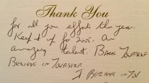 A "Thank You" card from my club coach and representative selector after the 2004 season