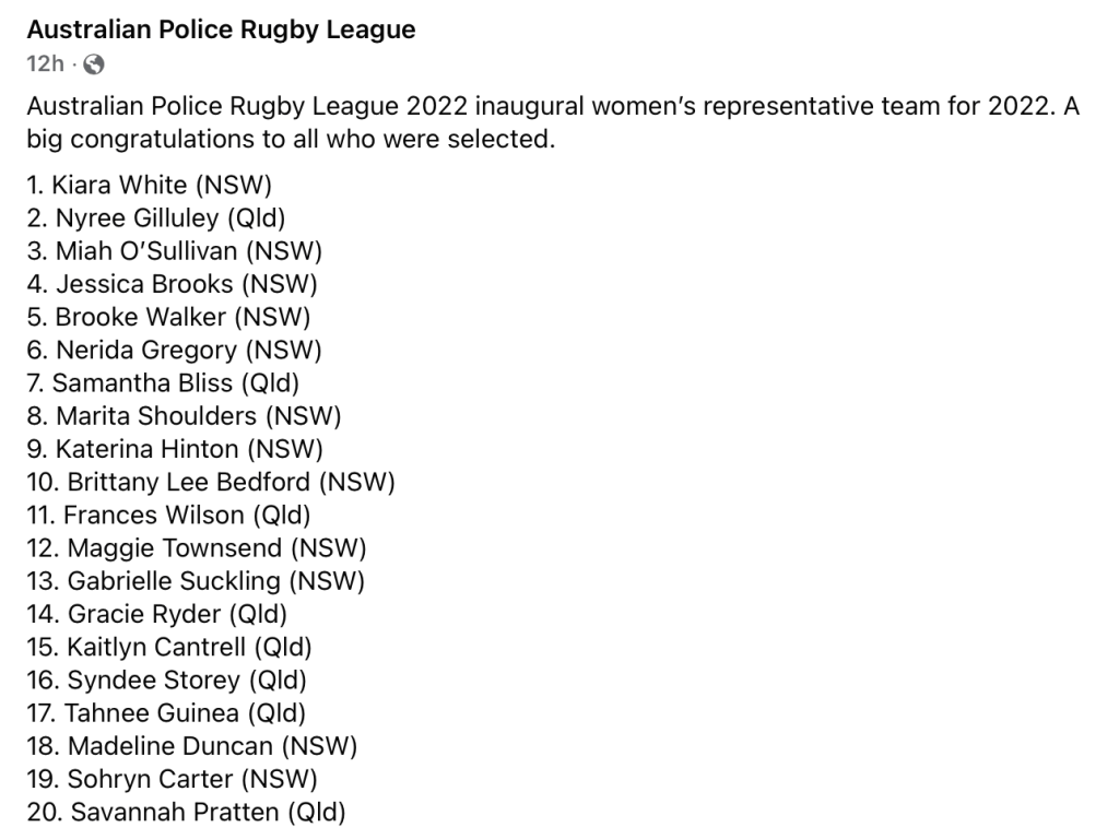 As for Laughlin, who’s also represented Australia at Police level in rugby union alongside her great mate Shoulders, she put her initial disappointment aside at missing selection.