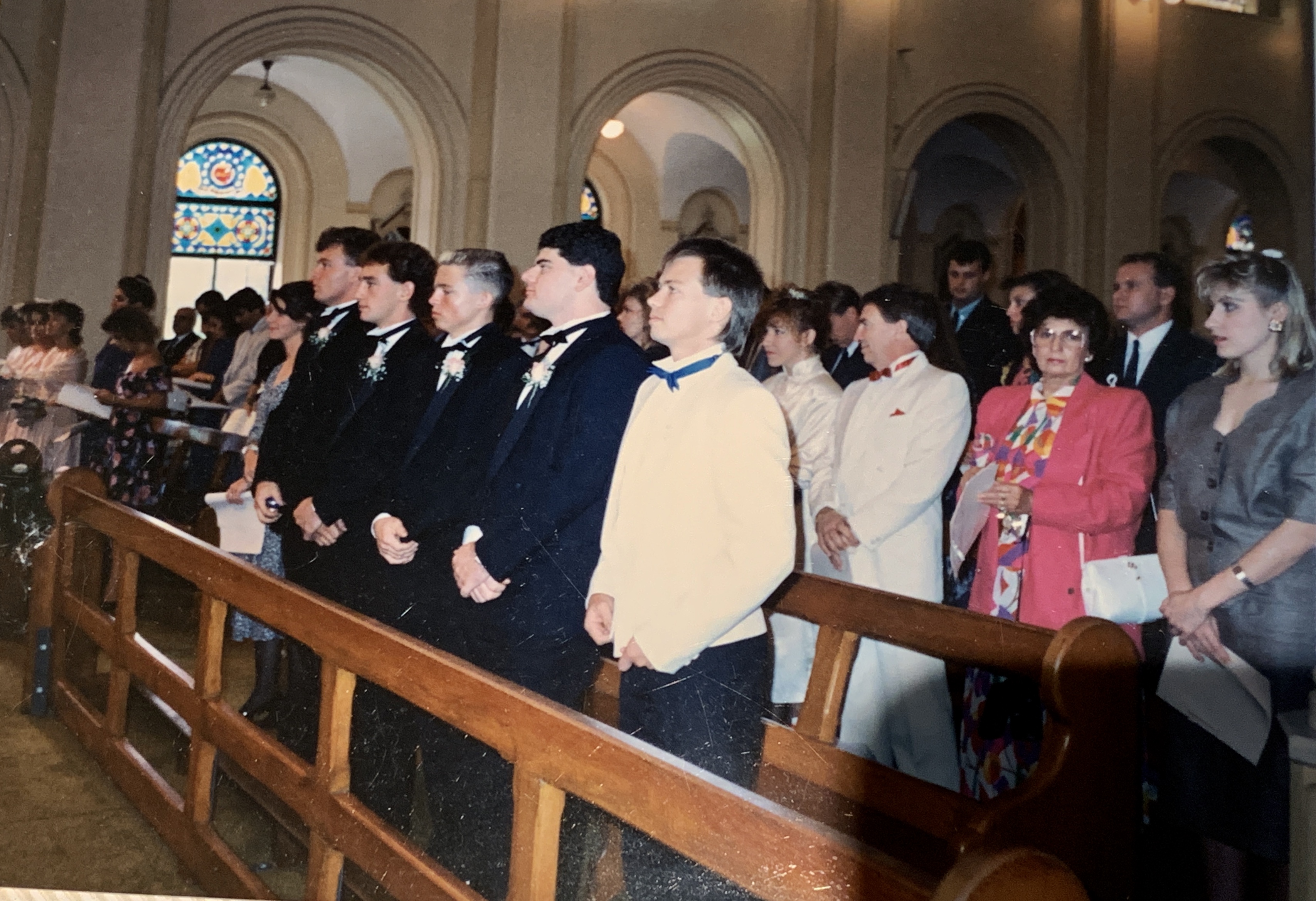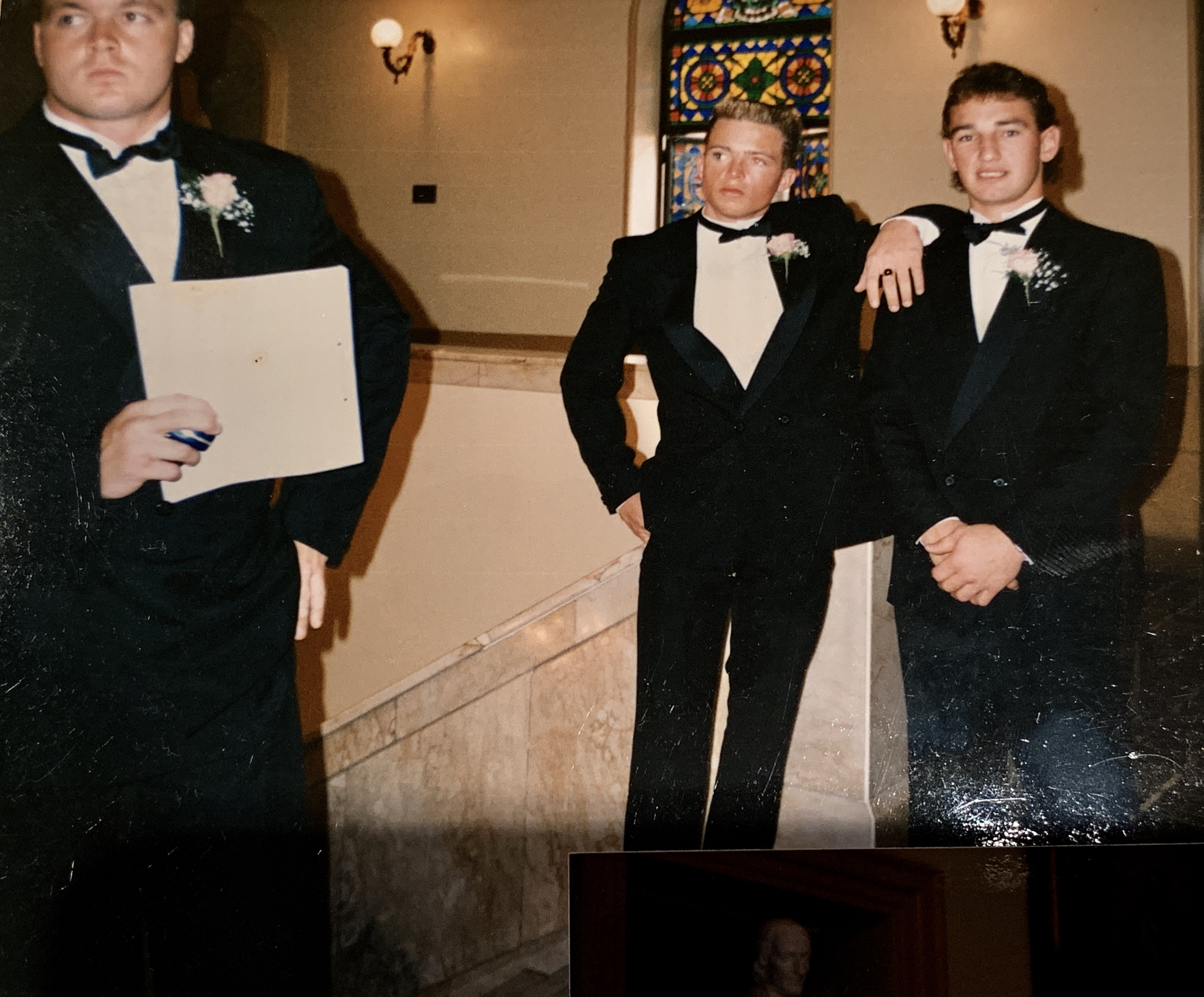 It appeared to have worked, as I thought I’d beaten my ‘demons’ as Sophie and I walked out of the Joeys chapel, down the marble staircase, through the black and white tiles (they’d been off-limits to us while we were students there) and out into the sunlight with our bridal party, which included then future World Cup winning Wallaby Tony Daly as my best man.