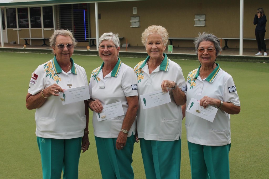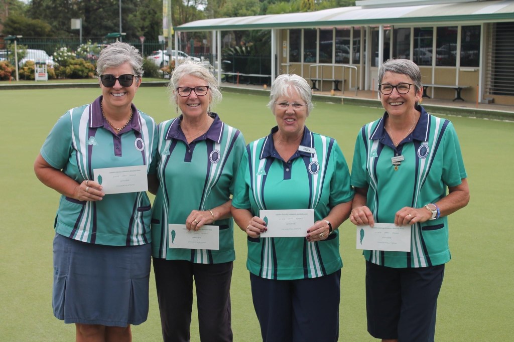 She was ably supported by her team in Katrina Middlebrook, Sylvia Mollison and Karen Coleman who’d all played well throughout the tournament, as they’d easily accounted for Kaye Neich’s Windsor team consisting of Jan Rowsell, Tiiu Haley and Caroline Layt 26-9 in their semi-final.